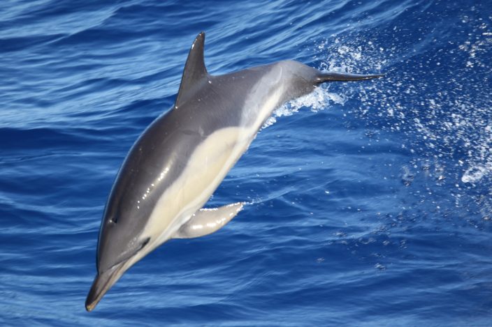 Acoustic receiver collected, we began the long journey back to Ireland, observing as we go. As we sailed along the coast of Portugal and Spain, the striped dolphins began to fade into the background as the familiar golden hourglass-shaped figure of common dolphins took over. Playful pods with tiny calves surfed the waves in our wake and rode on our bow, much to our delight. The warm waters were also home to young Mola molas (sunfish) basking in the sun and stunning sharks cruising at the surface.