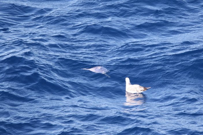 While we were hoping for a few whale sightings as we passed the Bay of Biscay, we were blown away by the sheer amount we spotted. For two days whales were abundant on the horizon. Most blows were seen at a fair distance, making identification trickier, especially with the wind scattering their shapes. Luckily for us, some of the large cetaceans were spotted closer to us. Large and powerful blows of Fin whales were seen from the horizon; the slightly smaller Sei whale was seen near the bow of the ship with a calf and a handful of small Minke whales were seen. They were brilliant days to be an MMO and a fantastic opportunity to capture large whale blows on the thermal camera for future analysis.