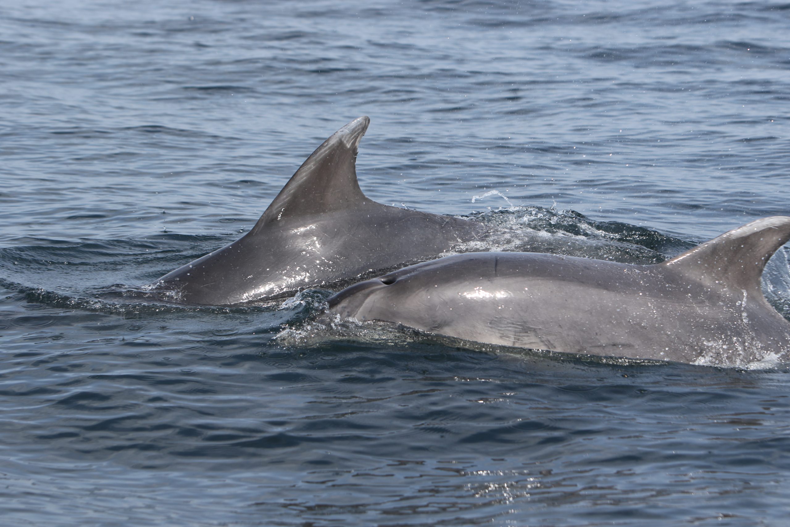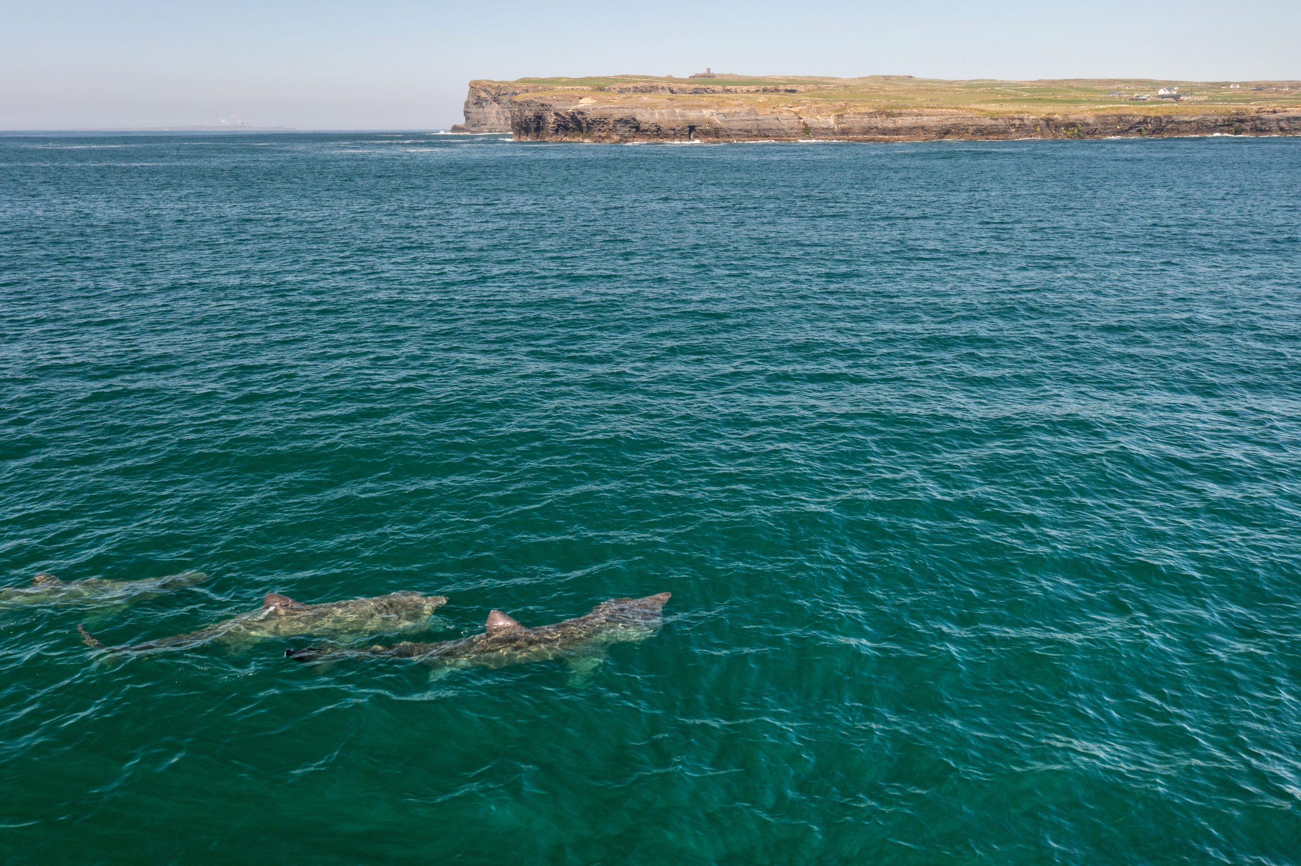 In addition, seals, both grey and harbour are known to haul out regularly at Mutton Island which is also a known pupping site, but also at Lahinch (Barr Trá ) and even at historically Hags Head. Bottlenose dolphins, which are part of the Shannon estuary population, are frequently recorded in the bay and common dolphin and minke whale during the summer. Basking sharks are increasingly seen foraging during early spring and in recent years courting aggregations, or torus, have been observed west of Liscannor Bay.