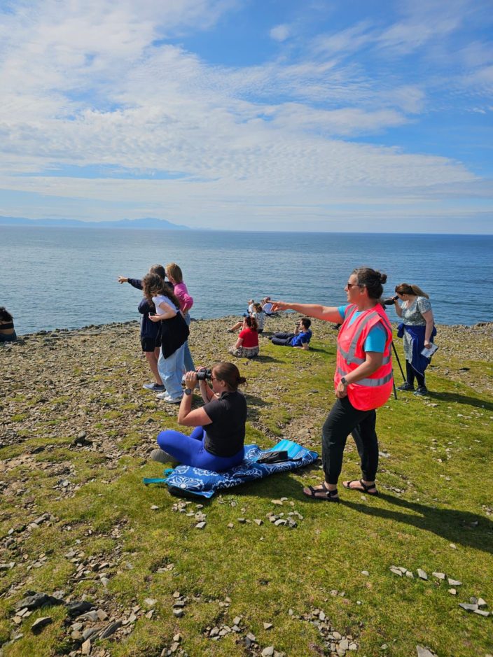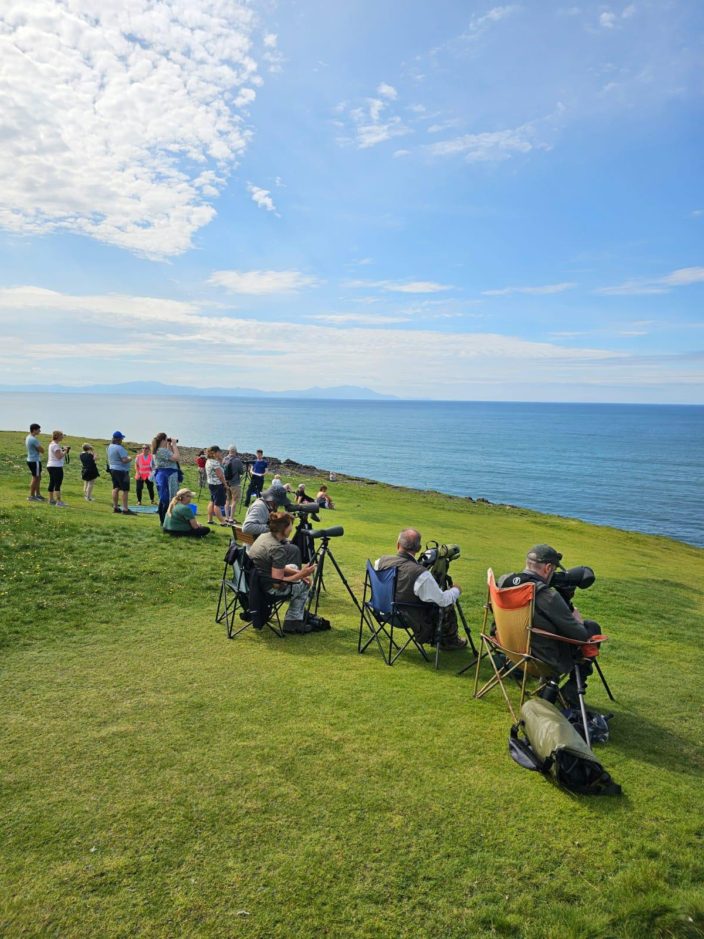 On Water Heritage Day, we hosted a Whale Watch Day at Loop Head Headland, beside the iconic Loop Head Lighthouse. With our base at Diarmuid and Gráinne’s Rock, we were blessed with stunning weather and a steady stream of visitors throughout the day. Joined by members of the Clare IWDG group, we had incredible sightings: first a small pod of bottlenose dolphins, followed by a large group of common dolphins and again a second pod of bottlenose dolphins. As if on cue, a minke whale appeared in the midst of a bustling seabird colony, giving visitors a true spectacle of Ireland’s marine life.