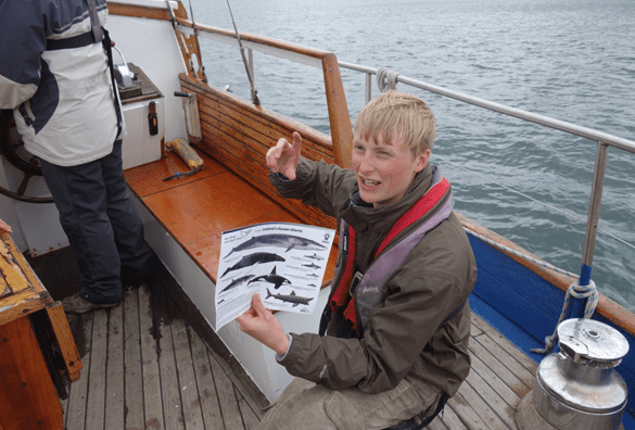 As we made our way closer to Killybegs, after a successful night’s sailing, the northwest welcomed the Celtic Mist with open arms, with high levels of marine activity throughout our final day of sailing. At several points, we were completely surrounded by multiple common dolphin pods, showing behaviours such as tail slapping, splashing, leaping, and bow riding throughout the entire journey. Sea bird species such as gannets, puffins, guillemots, were also in abundance. One of the highlights, spotted in Donegal Bay within the last few hours of our journey, was a minke whale, spotted multiple times, possibly feeding amongst the common dolphins. With a backdrop of Sliabh Liag and Benbulbin, the minke sighting is tough to beat.