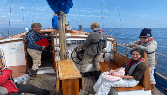A happy crew after a successful (completely unexpected) man overboard drill!