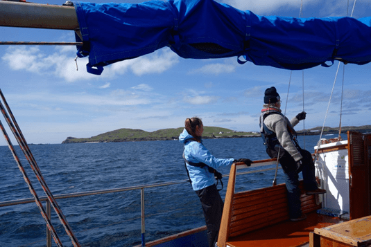 On Wednesday morning, bright and early at 7am, the Celtic Mist crew was awake and ready for a day of sailing. The key in the ignition, snacks of the day prepared, the key was turned – total silence (both from the motor & the crew). The lack of noise indicated something was wrong. After some patient attempts from skipper Pat & first mate Jane, the issue was localized (starter engine), however, unsolvable without a new part. And so began our real holiday on Inishbofin! Bikes were rented, beaches explored, mountains hiked, games played, pancakes ate… the list is endless, safe to say we made the most of the heatwave on Inishbofin.