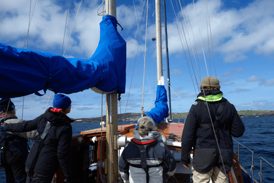 Once the weather prevailed the crew said goodbye to Rossaveal smiling, looking forward to a smoother sail than the last, keeping an eye out for all marine mammals while discussing the diversity of Irish waters. With fantastic sailing conditions & keen eyes we enjoyed bow riding from common dolphins, often surrounding us at all angles, a possible sunfish sighting and bird species such as puffins, gannets, storm petrels, and guillemots.