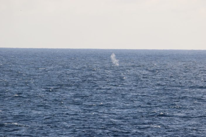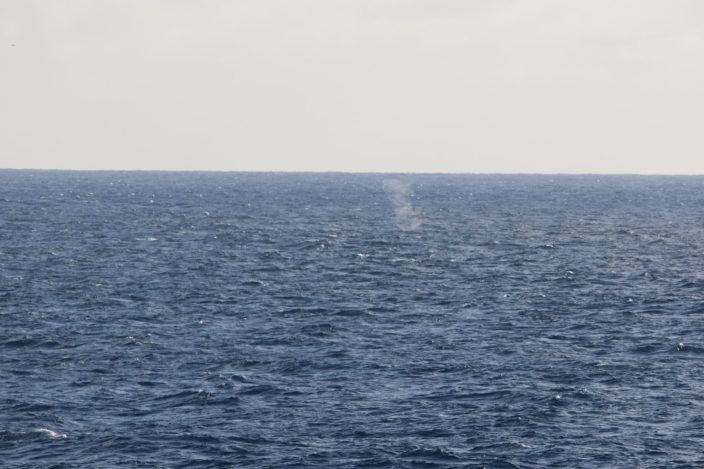 whale blow spotted on the horizon