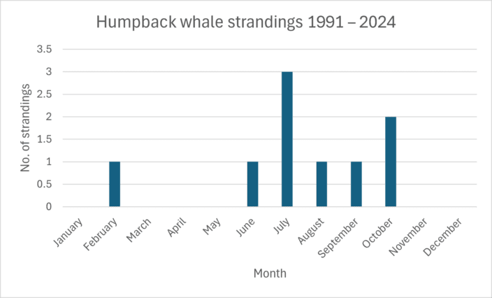 Strandings of humpback whales are rare in Ireland with only 9 recorded since 1991.