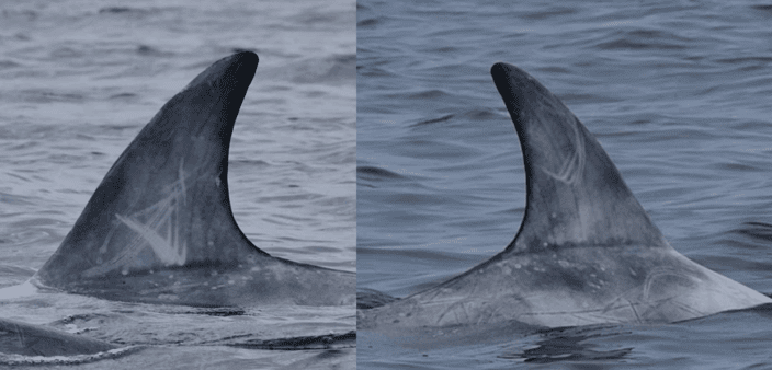 Left and Right side of RDIRL#58’s dorsal fin by Nick Massett, Blasket Islands