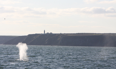 The sightings data confirmed that the whales, as in recent years, had pushed east early in the whale season, and were largely absent from West Cork, where filming was originally planned. In fact in recent weeks there has been fin whale activity along the entire 200 mile stretch of coastline from Slea Head, Co. Kerry to Hook Head, Co. Wexford. But the most consistent sightings were from West Waterford, and so we opted to make Youghal in East Cork our base, as it offered us safe harbour, a fine filming location and was within close range of Andrew Malcolm’s cliff top perch at Ram Head, Ardmore. Plus, the fact that another famous whale hunt back in 1955, namely “Moby Dick” was also filmed in Youghal with Gregory Peck wasn’t lost on us.