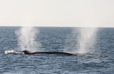Within 50 minutes of leaving port, with assistance from Andrew and Ann who were scoping from Ram Head, we were steaming towards our 1st fin whales which were slightly west of Youghal inside Co. Cork. They were not the easiest of encounters as the whales were diving deep, spending very little time on the surface due to the depth of the herring. But with such an experienced film crew, who’d pretty well, “been there, done that”, on the world’s whale circuit, it was a relief to bag so much footage, so easily and in such sublime conditions. On top of the 2-3 fin whales there were multiple common dolphin encounters, which was important as neither species has featured previously on any BBC natural history programme filmed in the British Isles.