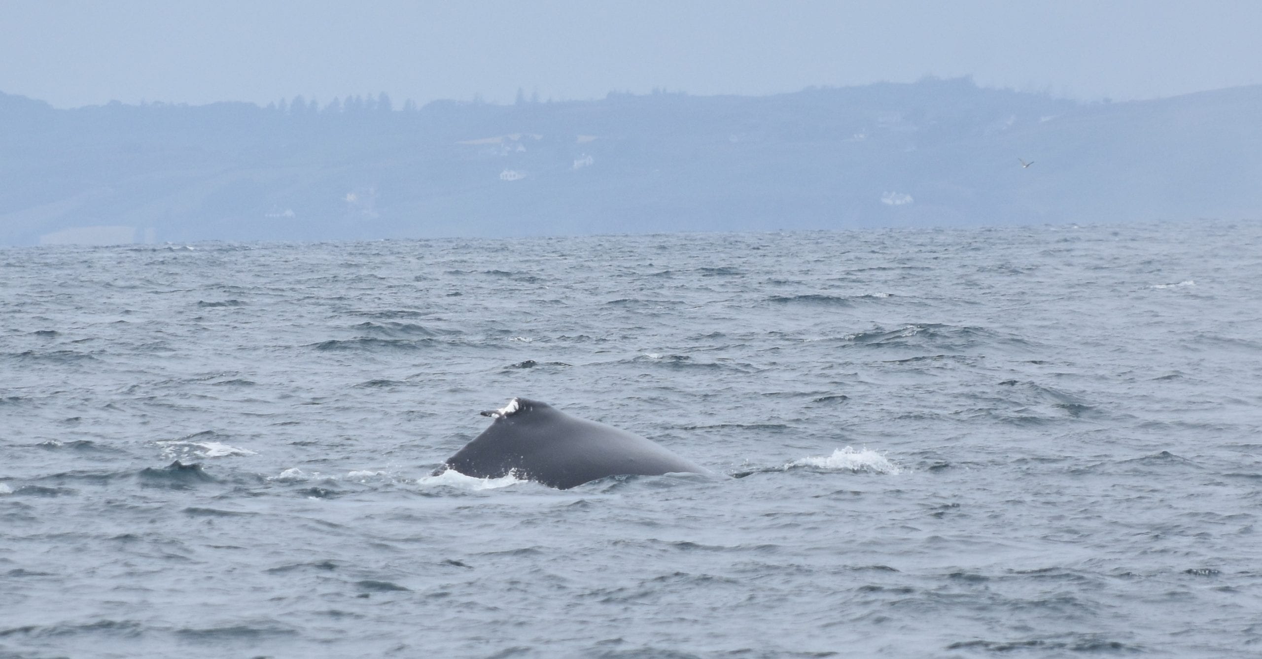 Initial cues that suggested that we were watching a humpback (large blow and tail fluke). Image by Sorcha McGuire/IWDG
