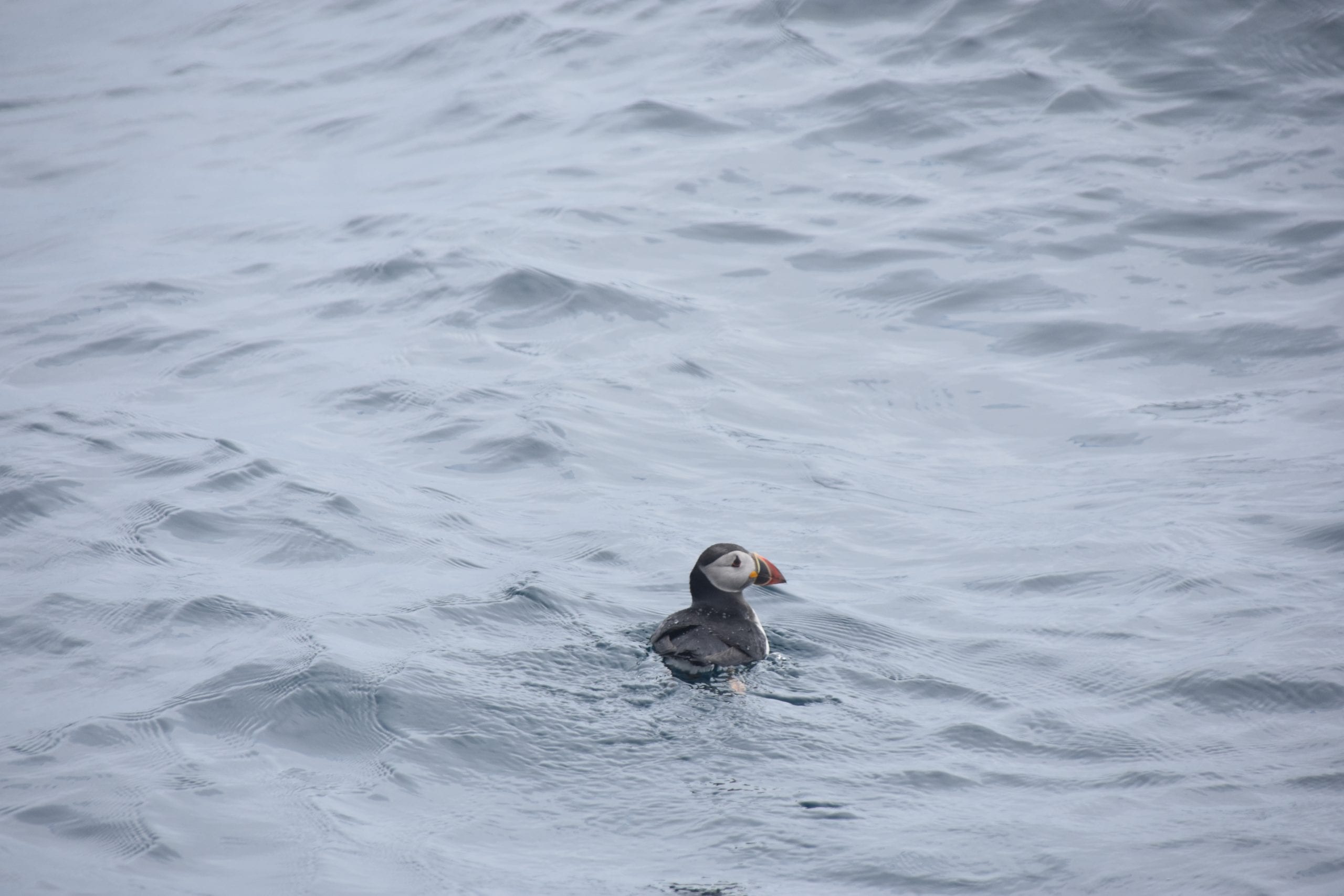 Puffins hanging out together on the surface of the water. Image by Li-Ann Small/IWDG