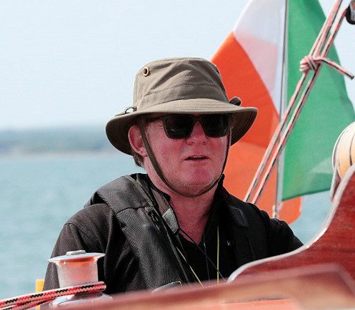 The author Denis O’Regan at the helm of Celtic Mist