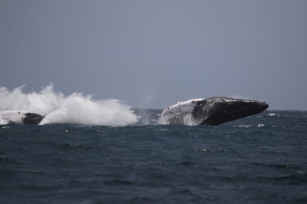Humpback whale calf breaching near boat in Bhai Sal Rei Photos: Simon Berrow
