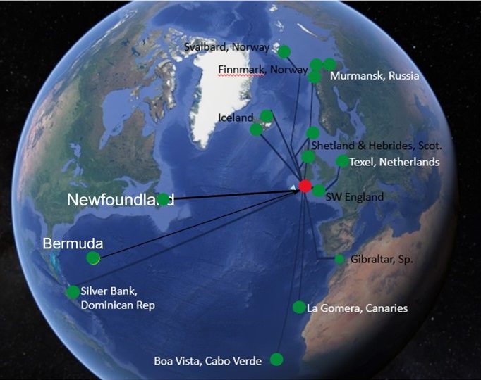 Figure 2: “Irish” Humpbacks, the international dimension of this global traveller.