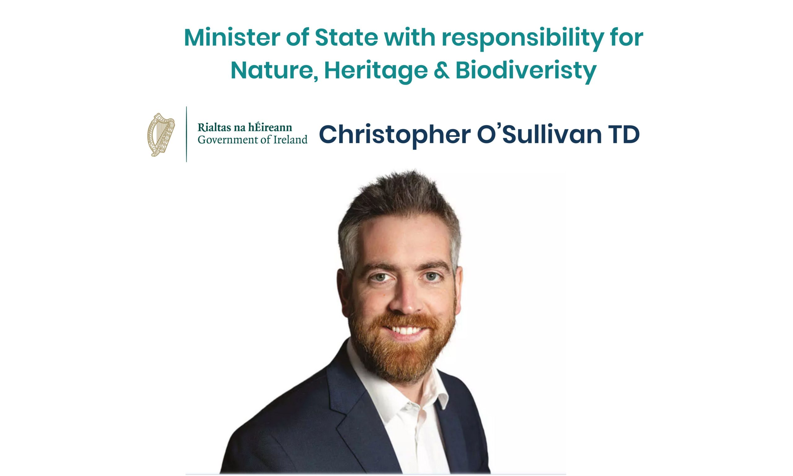 Cork man Christopher O’Sullivan (FF) has been entrusted with the all-important Nature, Heritage and Biodiversity brief within the Department of Housing, Local Government and Heritage, and the IWDG considers this to be the best possible outcome. Minister O’Sullivan has demonstrated a genuine interest in nature and biodiversity over the years and is a fitting replacement for Malcolm Noonan (GP). Assuming the brief is handed over unaltered, he will be responsible for getting the MPA Bill over the line, a task which is proving complex, difficult and time-consuming.