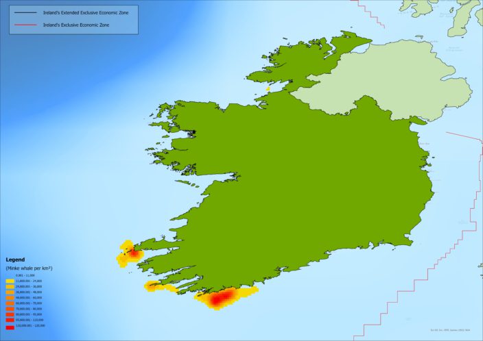 Minke whales are Irelands smallest and most abudant baleen whale. They are spotted from the spring to mid winter months feeding in the coastal waters, most frequently seen in the south, southwest of Ireland.