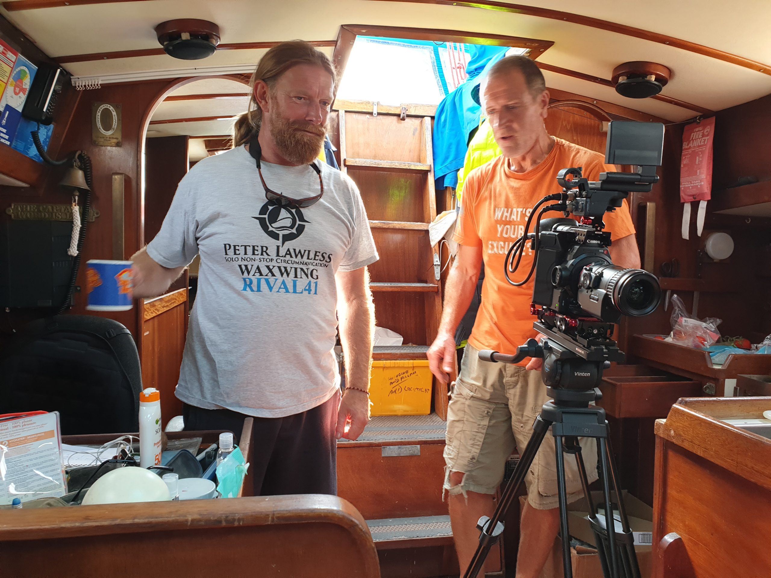 IWDG Film-maker Tony Whelan onboard Waxwing with Peter Lawless during filming
