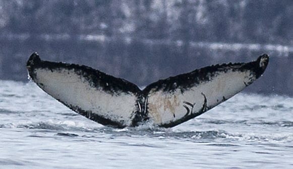 This whale is known to Irish researchers as #HBIRL67, or to the North Atlantic Humpback Whale Catalogue as #10435. However, we fondly refer to her as Queen Medb. Just like the Irish warrior queen we suspect this female humpback to be a master of strategy and warfare having survived a killer whale attack. Clear killer whale rake marks on her left ventral fluke are a constant reminder of her fierce battle but also make her distinguishable from other humpback whales.