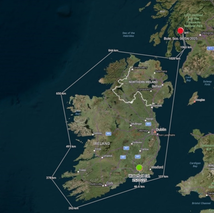 Possible tracks between Waterford and final resting place on Bute, W. Scotland, courtesy IWDG