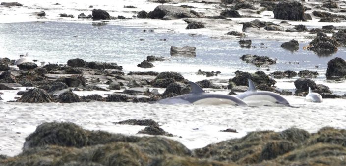 Local kayakers were on standby to assist with herding the dolphins out once they refloated.