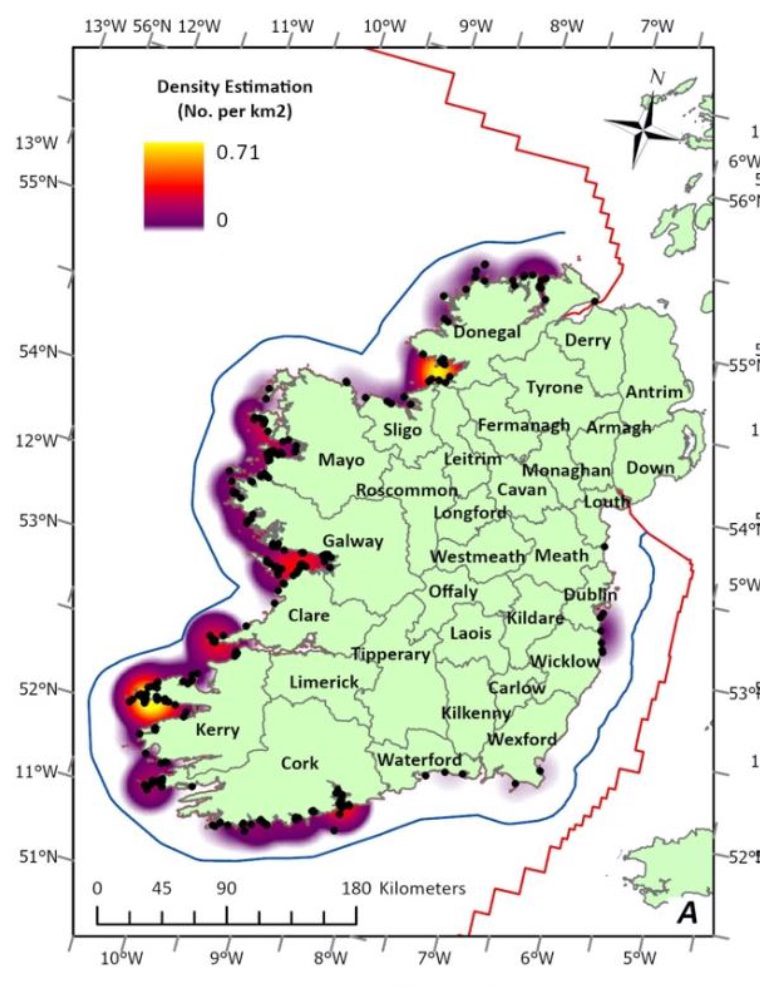 [iv] Keogh, H. 2020. Identifying Potential MCZ’s in Ireland’s EEZ, Whale and Dolphin species density maps. Irish and Whale Dolphin Group, IWDG Website. Viewed 1 May 2021. Available from:
