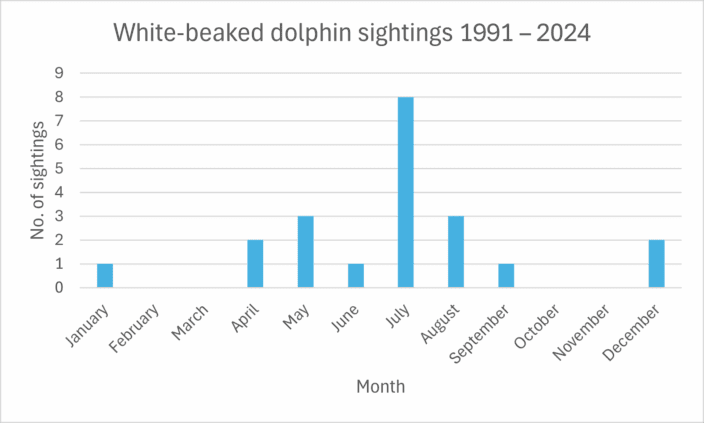 Little is known about this species in Irish waters but as expected of a cold water shelf species, most sighting in Irish waters are from the Northwest region where they appear to be most abundant in offshore waters off counties Mayo and Donegal.
